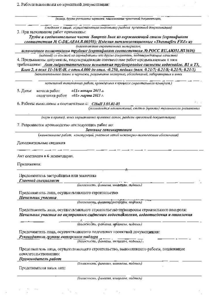 Профессиональное оформление актов освидетельствования по любым конструктивным элементам и сетям